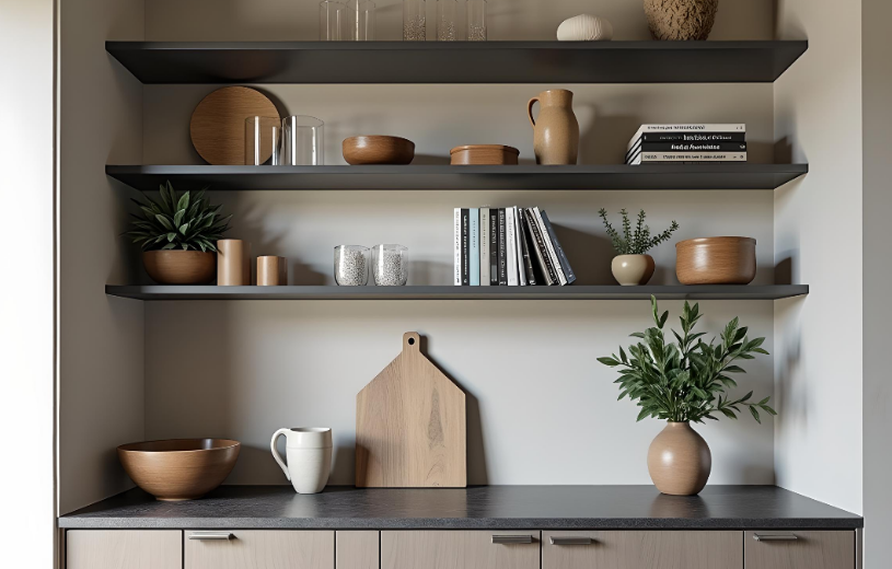 Kitchens: Add a steel shelf for cookware or decorative accents.